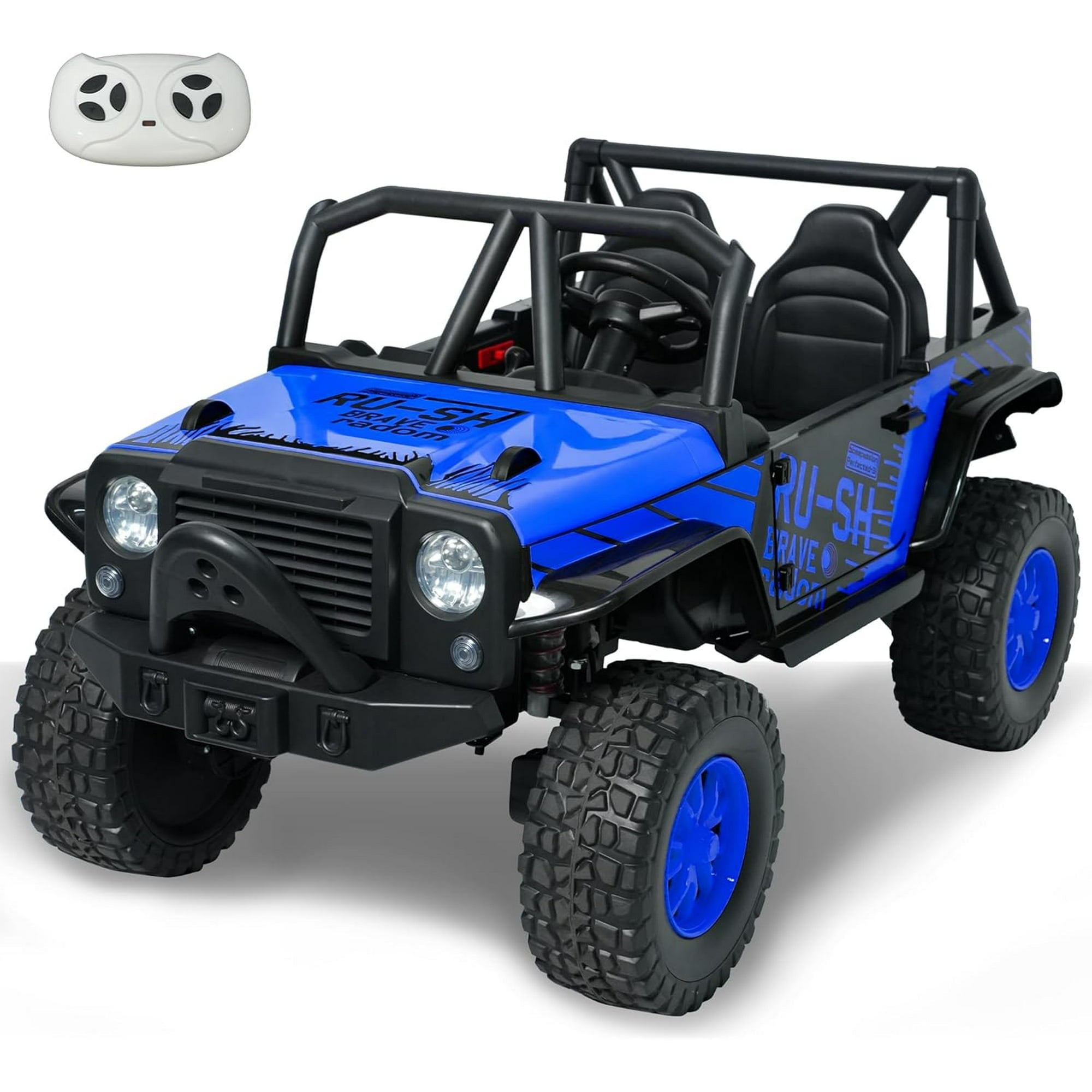 • 4X Shock Absorber System: Quad spring suspension + wear-resistant tires conquer grass/asphalt. Seat belts ensure bumpy ride safety.
