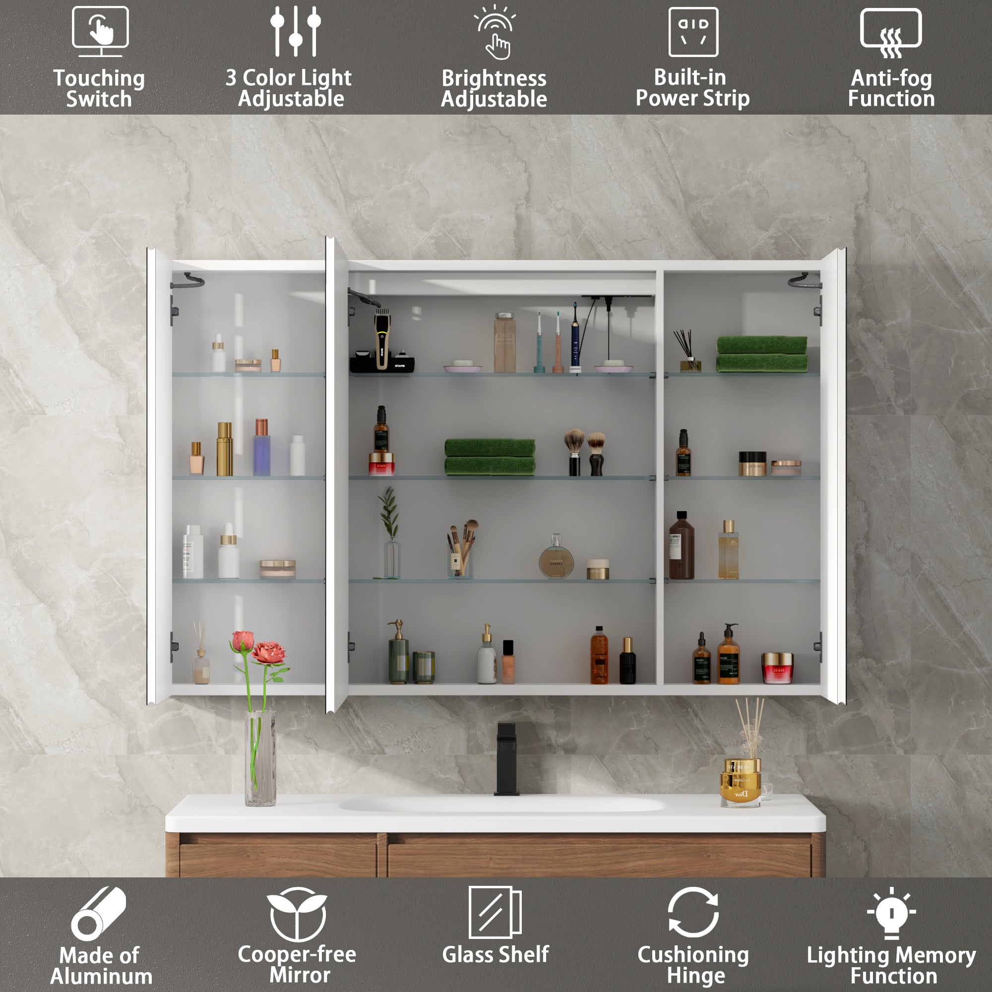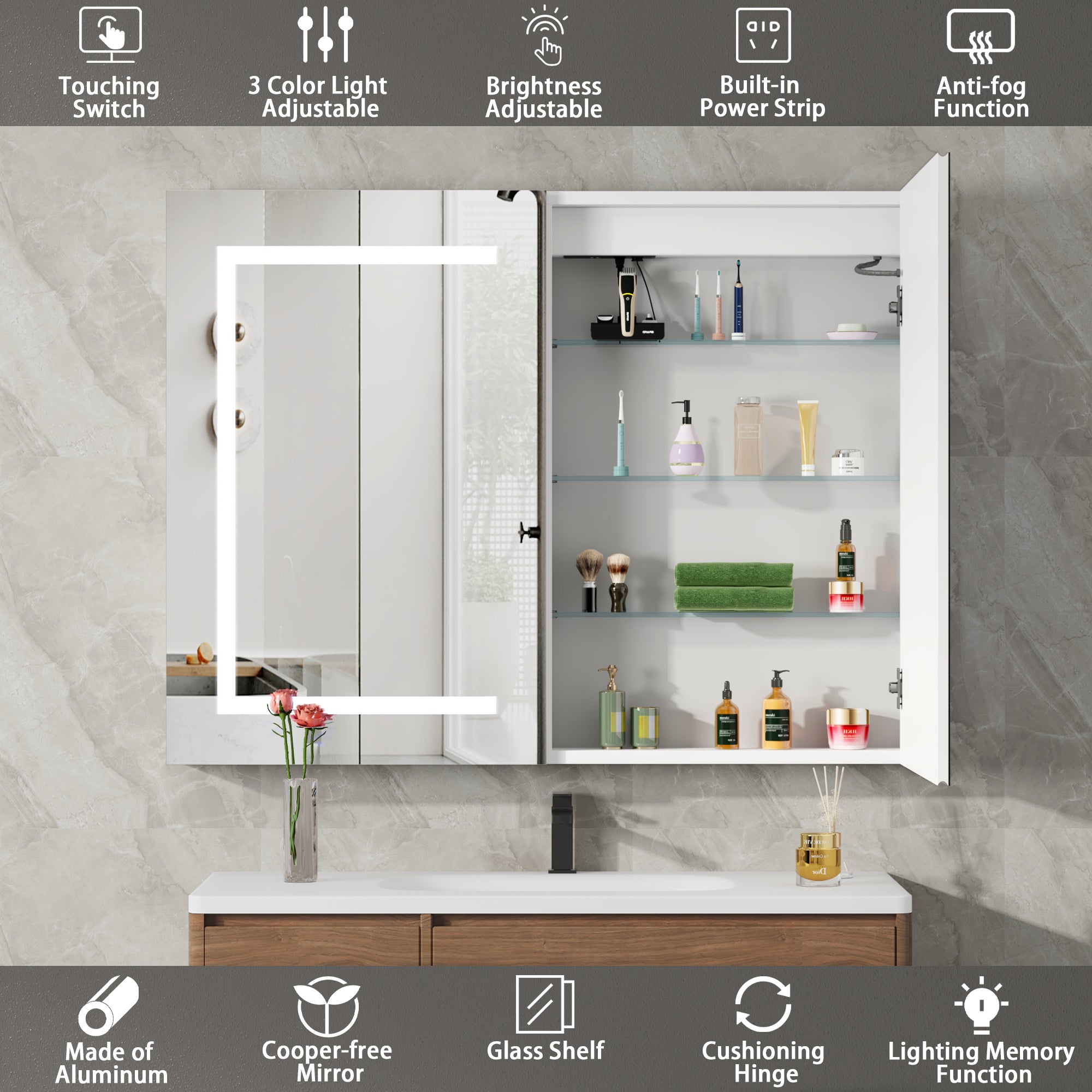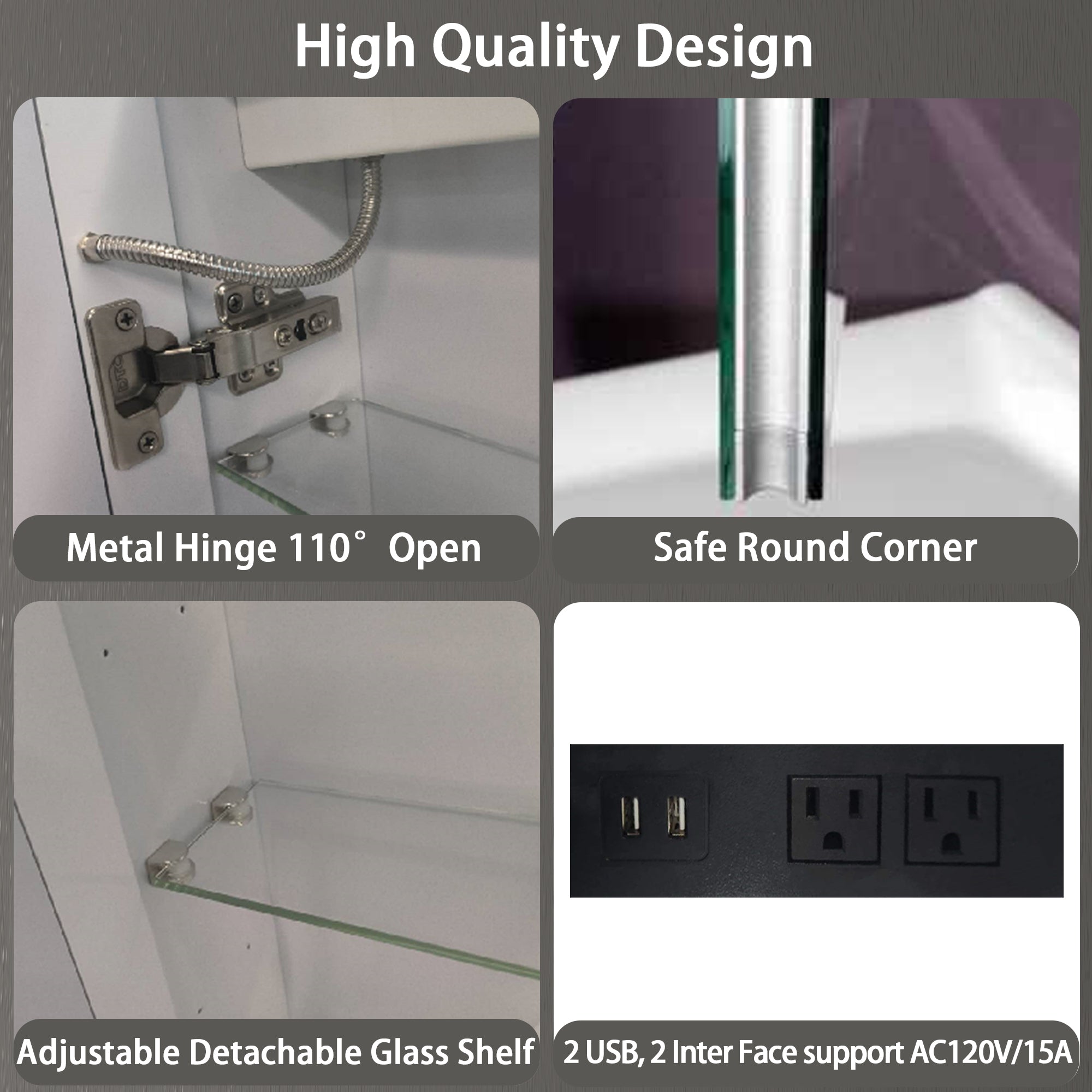Aluminum Medicine Cabinet , Wall Mounted Surface led Medicine Cabinet, Defog, Stepless Dimming, 3 Color Change, 2 Outlets, 2USB for Bathroom