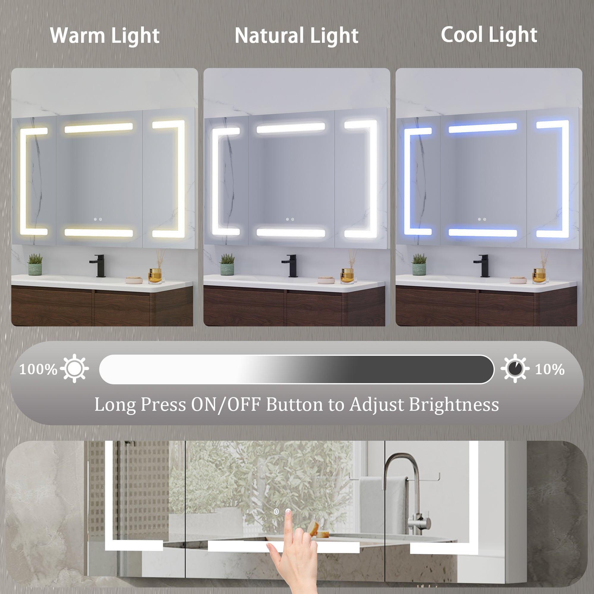 • 3 COLOR & DIMMABLE LED: A touch switch operates our illuminated mirror cabinet. Three light mode adjustments are available by short pressing the on/off button: warm, natural, and cold. Long press the on/off button for step-less adjustment of light brightness. Our medicine cabinet also features a memory function for LED illumination. It will remember the last configuration you made. The light is always the pre-programmed hue and brightness when you turn it on. A perfect option for daily care.