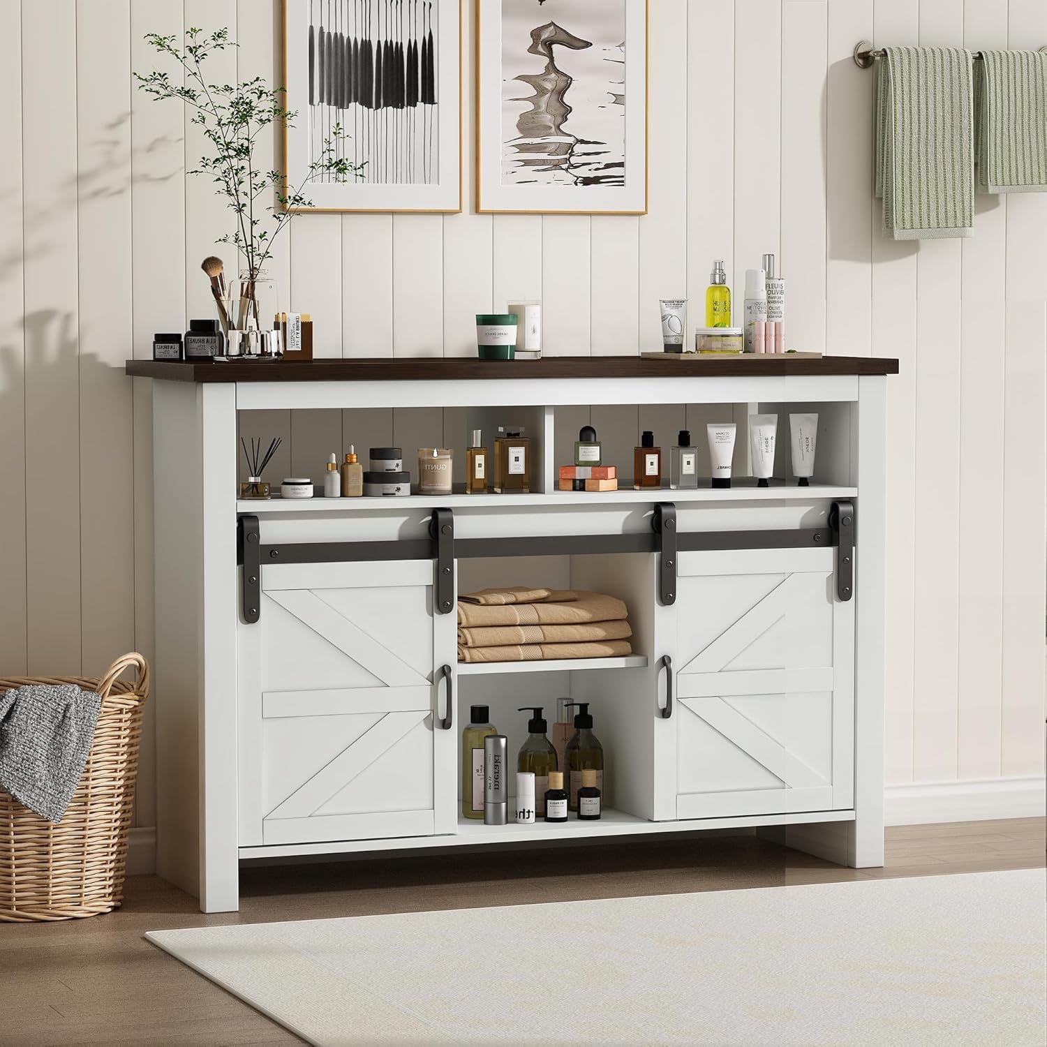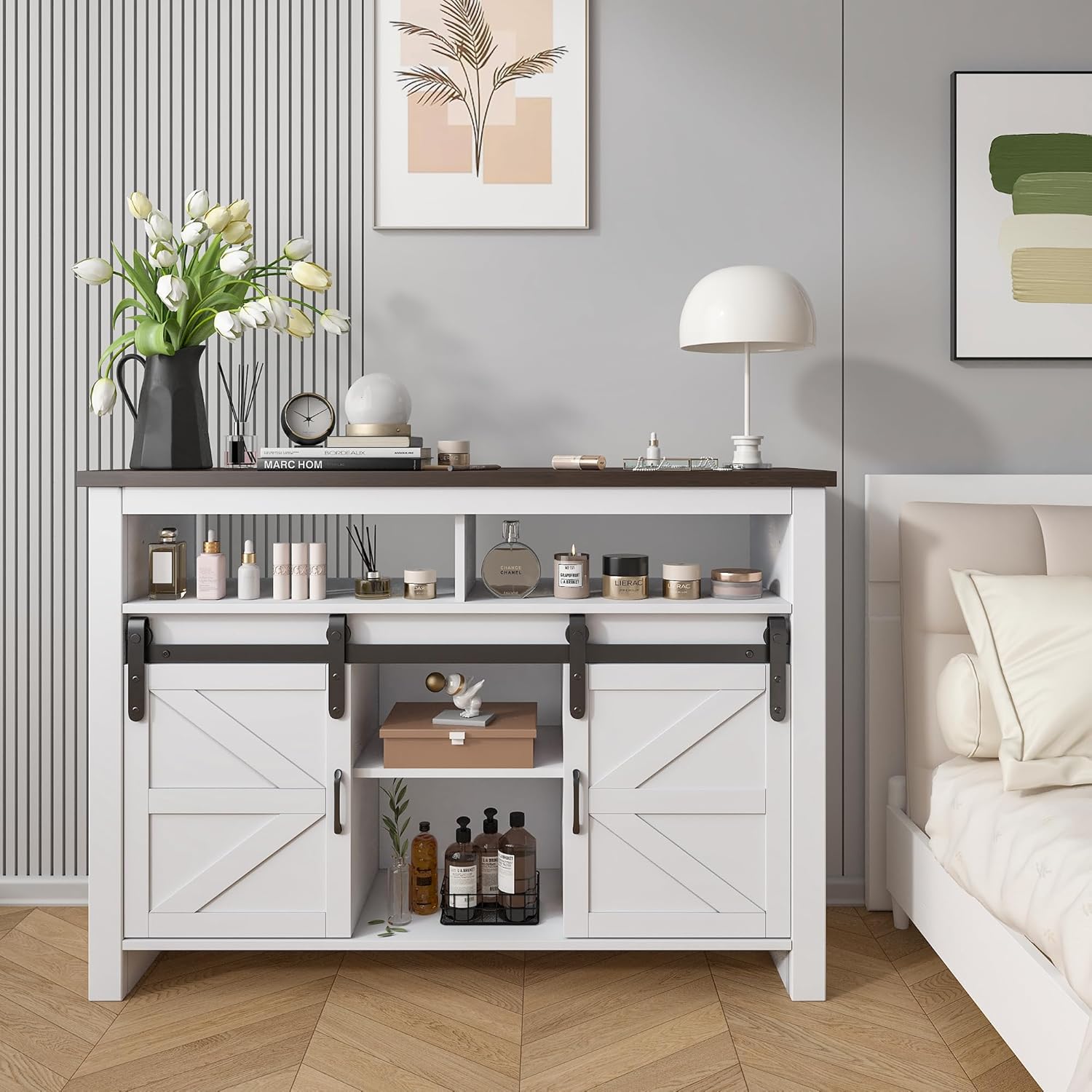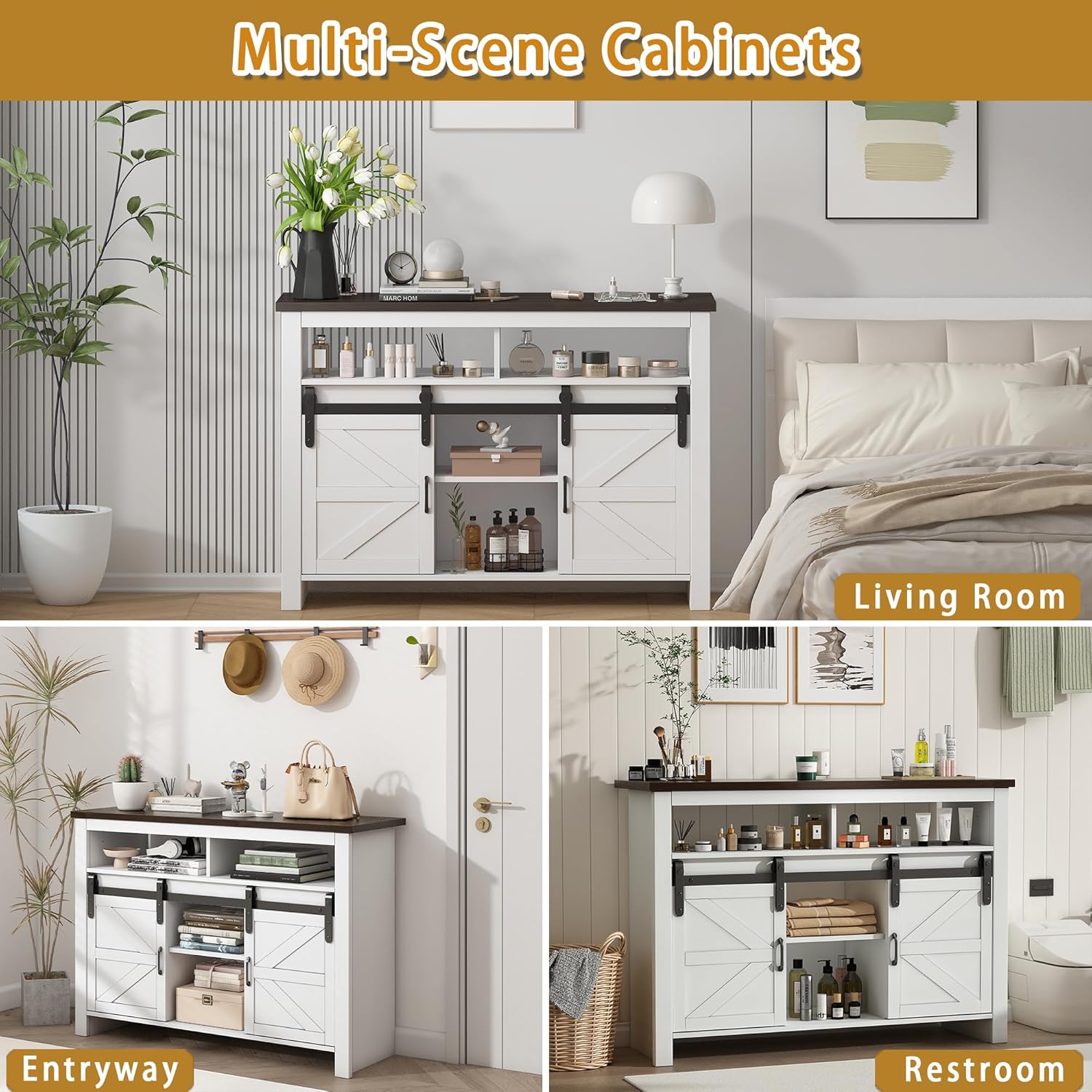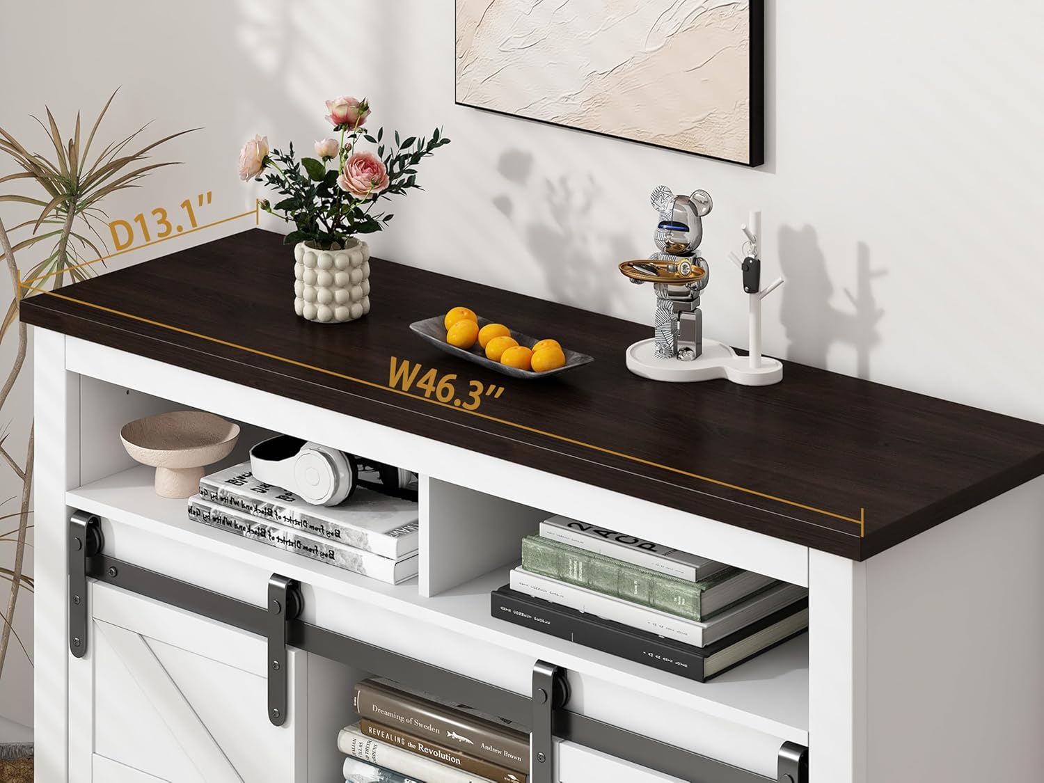 - 【Multifunctional Entryway Table】: Our 46-inch farmhouse-style entryway table comes with sliding barn doors, 2 hidden cabinets, and a spacious top, the console for entrance with storage can fit well into any space in your home such as living room, entryway, hallway, foyer, kitchen, and bedroom