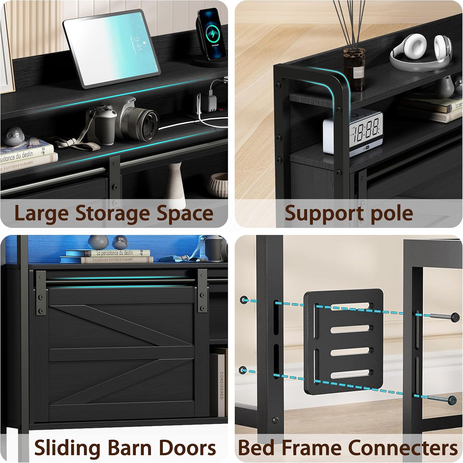 • Large Storage Space and Classic Design: Our headboard with 3 tiers of storage space and sliding barn door is designed for storing your cell phone, photos, glasses, clocks, books and some other personal belongings to make your room look organized and create a clean and comfortable sleeping environment. The classic barn door design allows our headboard to match your room better