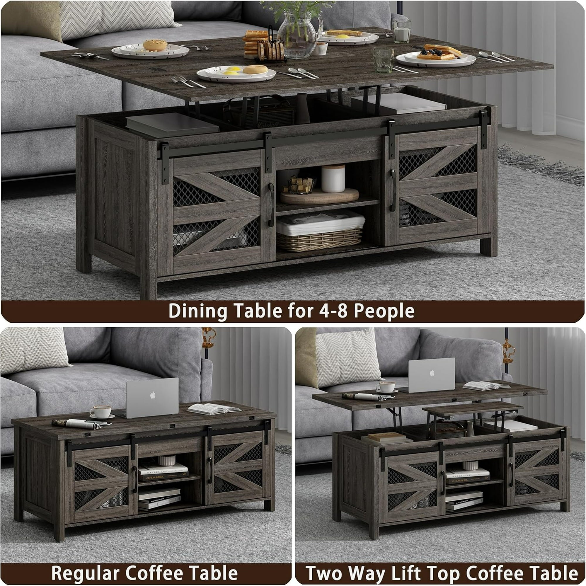 - This versatile 4-in-1 coffee table offers multiple lift and flip options to meet your needs - use it as a classic coffee table, an independent workspace for two, or a dining or gaming table for 4-8 people