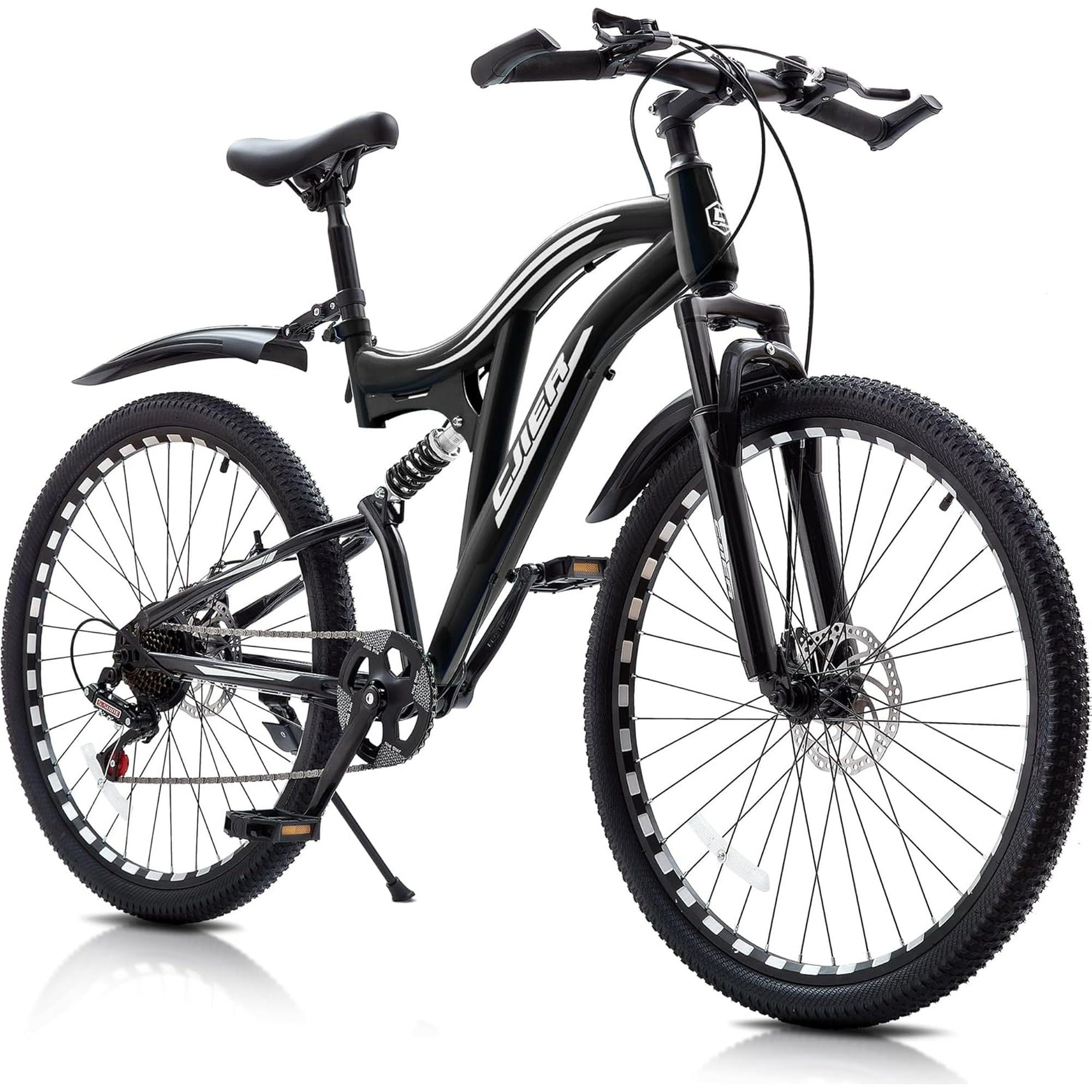 • 💥 Dual Full Suspension Frame--High-carbon steel frame with front fork + rear shock absorber cushions bumps on rough terrain. Suspended seat enhances control for kids, teens, and adult riders.